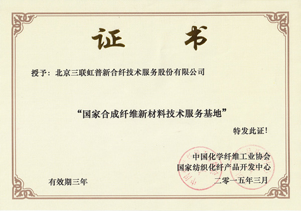 近日,三聯(lián)虹普被中國化學(xué)纖維工業(yè)協(xié)會、國家紡織化纖產(chǎn)品開發(fā)中心聯(lián)合授予“國家合成纖維新材料技術(shù)服務(wù)基地”。